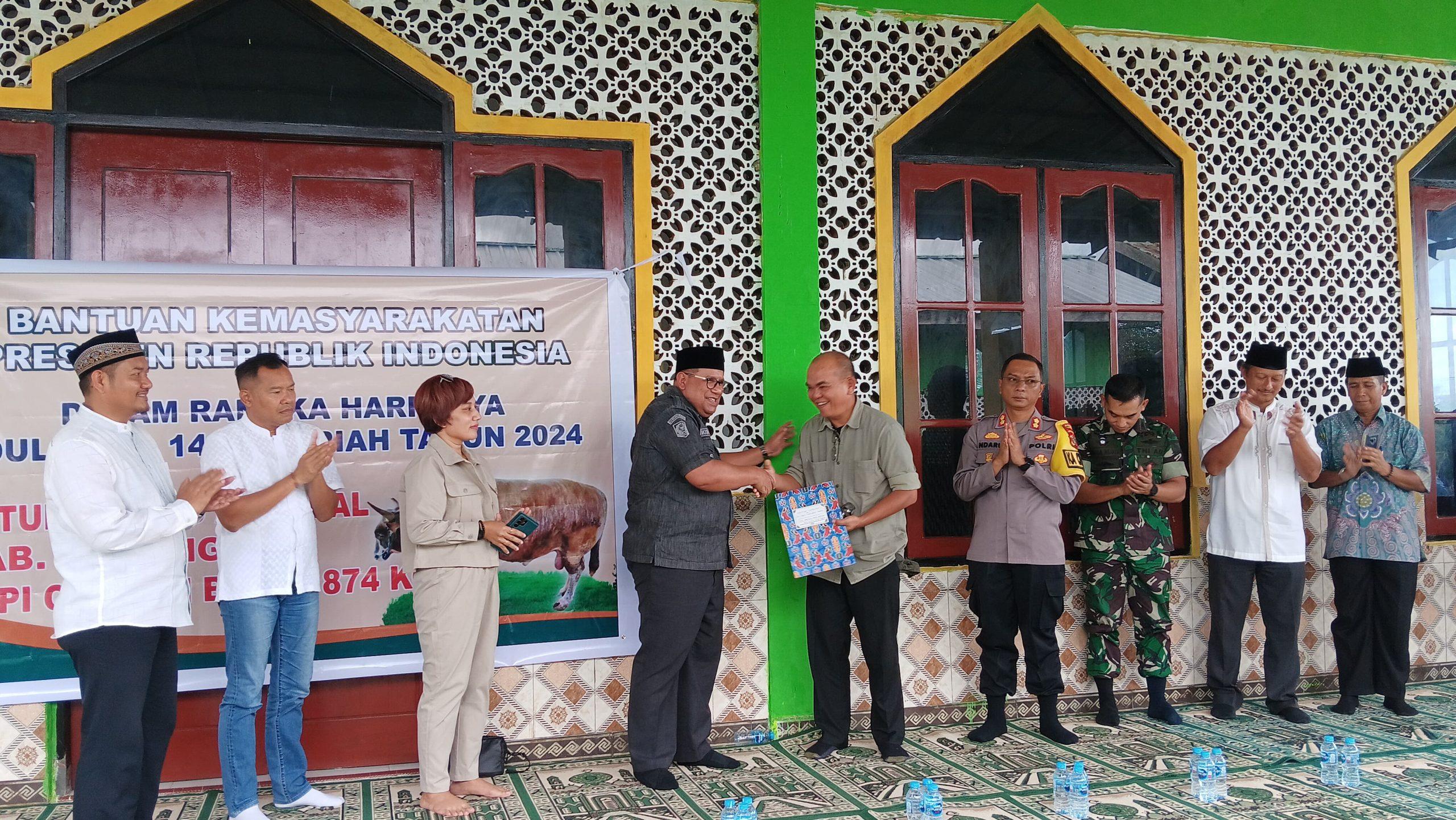 Pantauan BalleoNews, bantuan kemasyarakatan berupa sapi kurban dari Presiden Republik Indonesia Joko Widodo, diserahkan oleh Penjabat Gubernur Papua Barat Daya Mohammad Musa’ad kepada warga Jamaah Masjid Al Jabal, Kampung Maibo, Kabupaten Sorong, Papua Barat Daya, Minggu (16/6/2024).