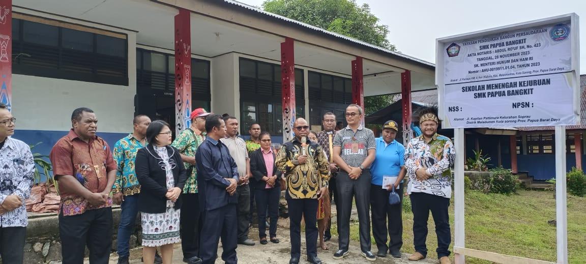 “Kita masih merindukan pembangunan terutama di bidang pendidikan. Menambah satu lembaga pendidikan baru menjadi daya ungkit baru untuk pembangunan pendidikan di Papua Barat Daya. Makanya saya sebagai Pj Wali Kota Sorong ikut mendukung hadirnya SMK Papua Bangkit,” ungkap Pj Wali Kota Sorong.