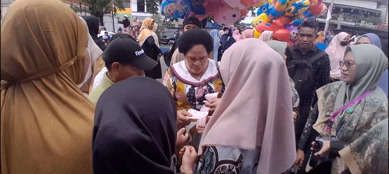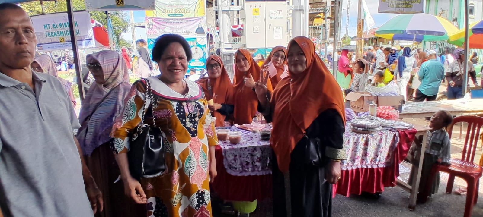 Tak jarang ibu-ibu majelis taklim pun mendekati Petronela Kambuaya, untuk berselfie. Keduanya tak ketinggalan juga membagikan kupon bazar kepada ibu-ibu yang hendak berbelanja makanan siap saji.