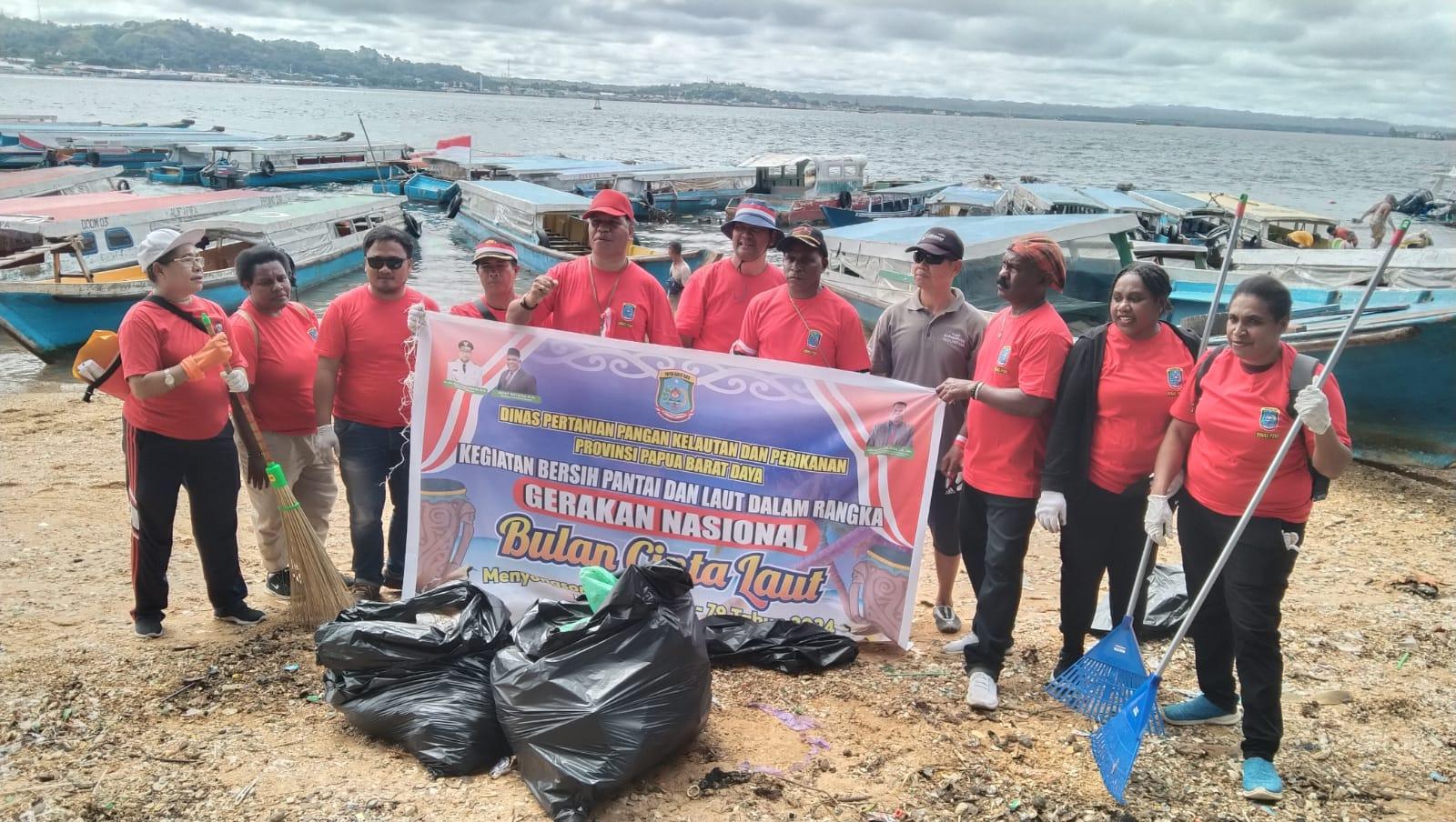 Dalam rangka memperingati Bulan Cinta Laut (BCL) 2024, Dinas Pertanian, Pangan, Kelautan dan Perikanan Provinsi Papua Barat Daya menggelar aksi bersih pantai dan laut, Jumat (2/8/2024).