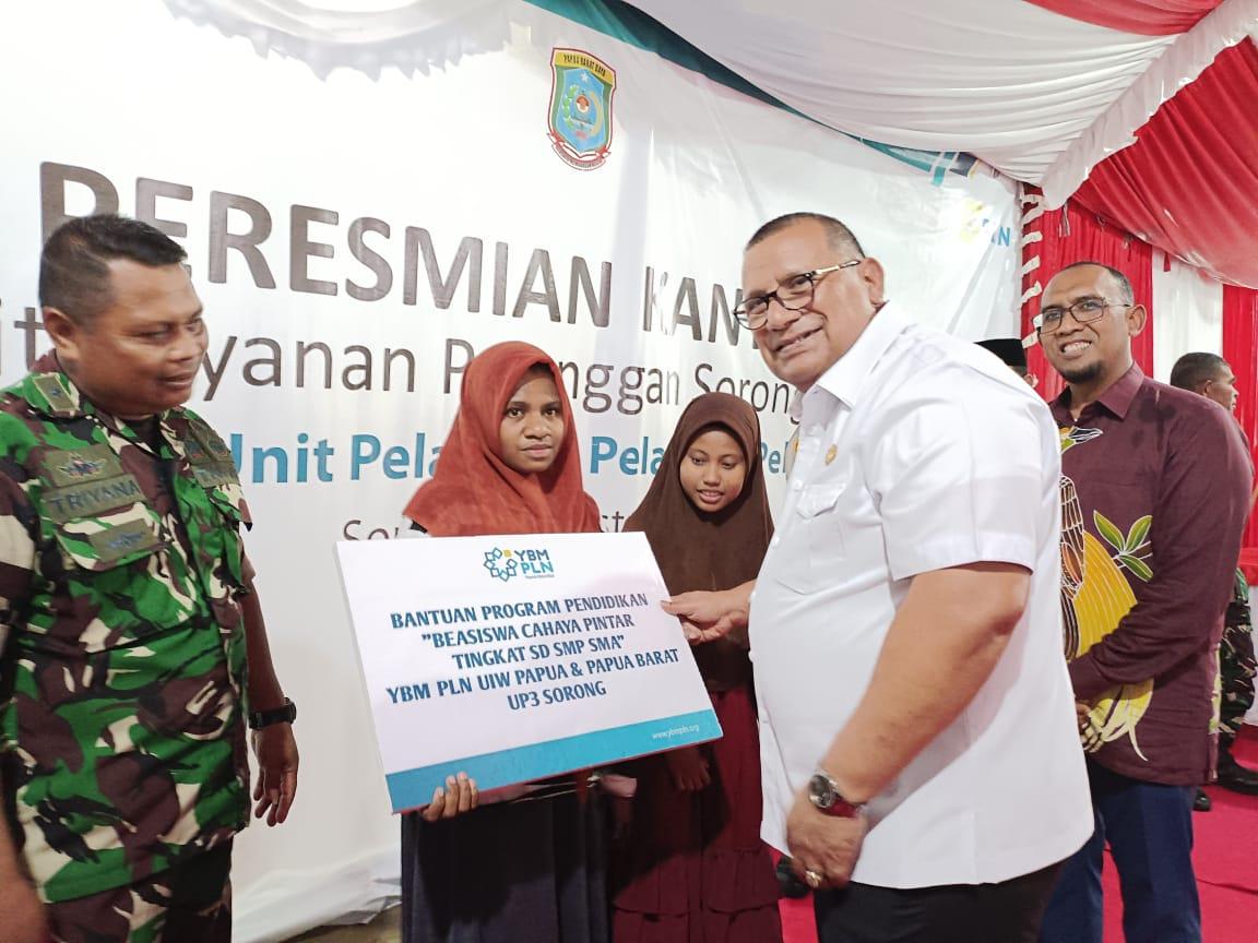 Pantauan BalleoNews, disela-sela peresmian, YBM PLN UIW Papua dan Papua Barat UP3 Sorong juga menyerahkan bantuan program pendidikan “Beasiswa Cahaya Pintar Tingkat SD, SMP dan SMA”.