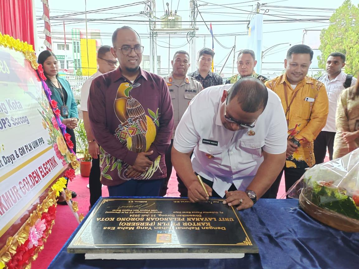 Peresmian ditandai dengan pengguntingan pita dan penandatanganan prasasti oleh Pj Gubernur PBD bersama General Manager PLN Unit Induk Wilayah Papua & Papua Barat Budiono.