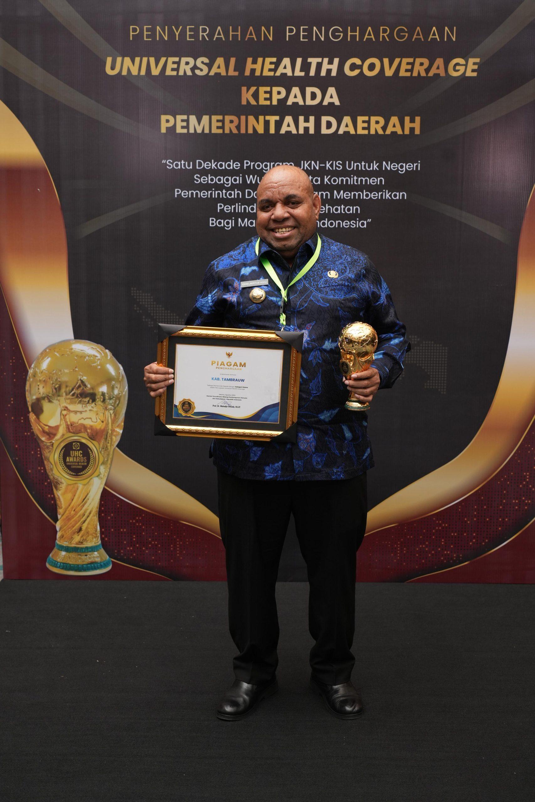 Atas prestasi tersebut, Penjabat Bupati Tambrauw Engelbertus Gabriel Kocu diundang langsung untuk menerima penghargaan Universal Health Coverage, di Krakatau Grand Ballroom Taman Mini Indonesia Indah, Jakarta, Kamis (8/8/2024).