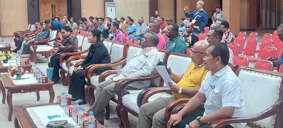 Penjabat Wali Kota Sorong Bernhard Eduard Rondonuwu mengumpulkan semua Pimpinan OPD, 10 Kepala Distrik hingga 41 Kepala Kelurahan di lingkungan Pemkot Sorong, di Gedung LJ Kompleks Kantor Walikota Sorong, Jumat (16/8/2024).