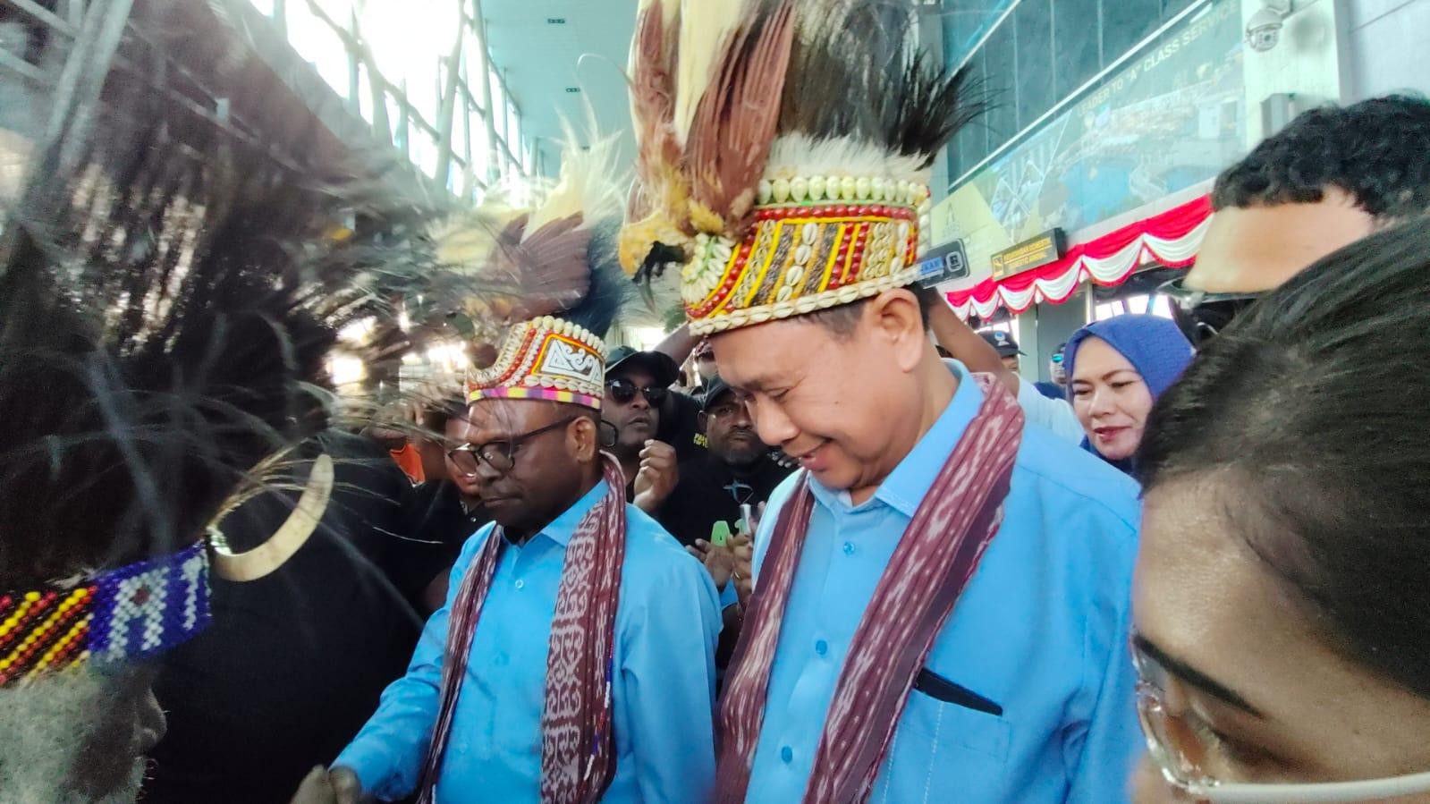 Pantauan BalleoNews, saat tiba di Bandara DEO Sorong, pasangan Losari (Lobat-Ansar) disambut secara adat Moi oleh tua-tua adat Suku Moi. Keduanya pun mendapat pengalungan syal kain timur dan juga dipakaikan mahkota burung cenderawasih.