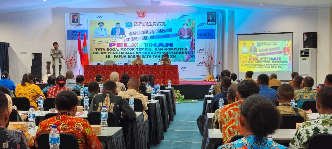 Dinas Sosial, Pemberdayaan Perempuan dan Perlindungan Anak Provinsi Papua Barat Daya menggelar pelatihan tata boga, motor tempel dan komputer kepada Orang Asli Papua (OAP), yang berlangsung di Hotel Mamberamo Sorong, Senin (26/8/2024).