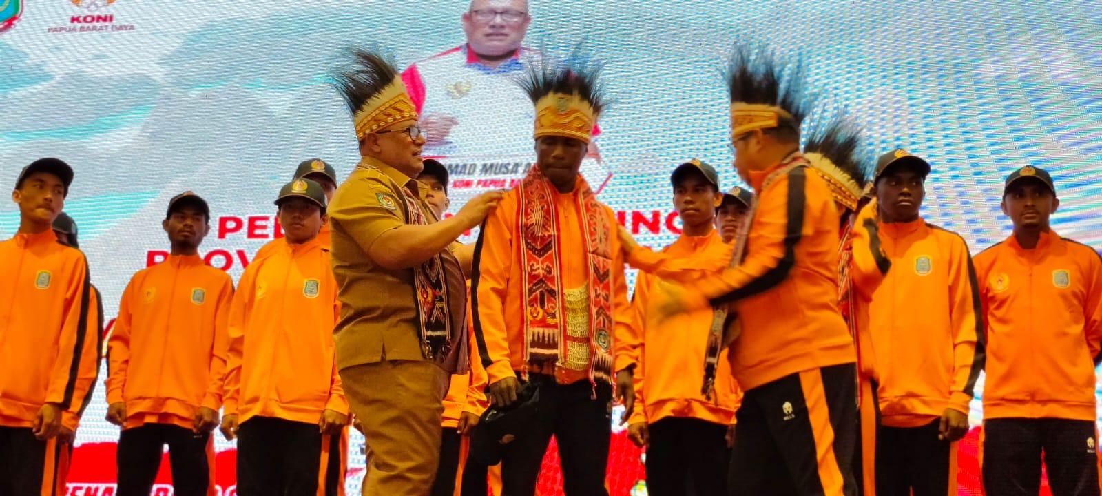 Penjabat Gubernur Papua Barat Daya Mohammad Musa’ad melepas secara resmi kontingen Provinsi Papua Barat Daya untuk mengikuti PON XXI di Aceh dan Sumatera Utara (SUMUT), Selasa (3/9/2024).