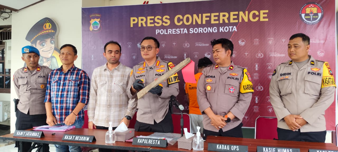 Kemudian sesampainya di Jalan Ahmad Yani tepatnya di depan halte Ramayana Kota Sorong, korban dipukul pelaku dengan menggunakan sebilah kayu.