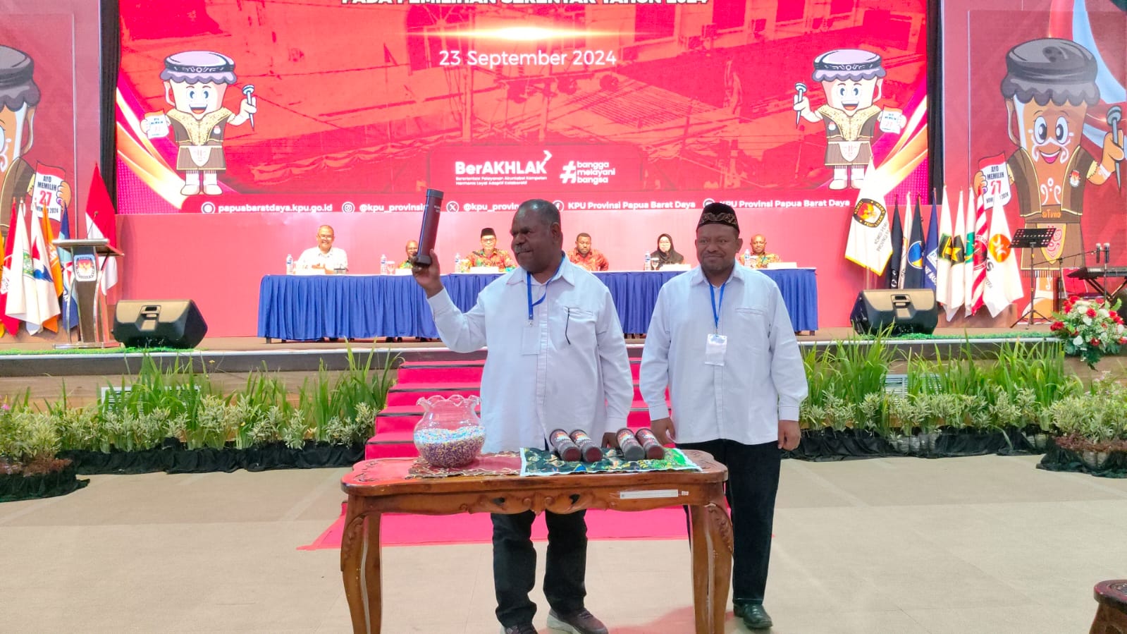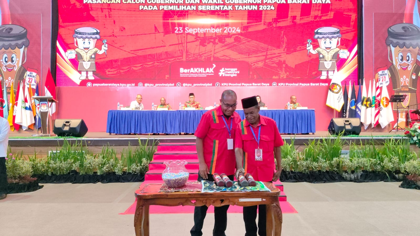 Berikut penetapan nomor urut pasangan calon Gubernur-Wakil Gubernur Provinsi Papua Barat Daya: