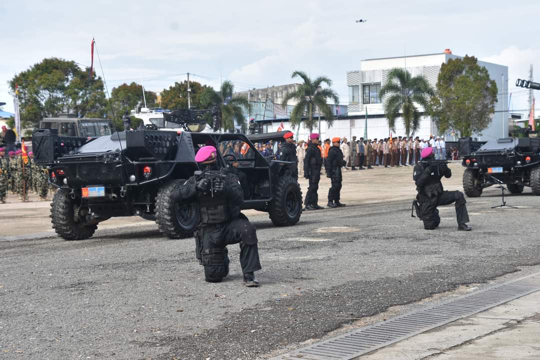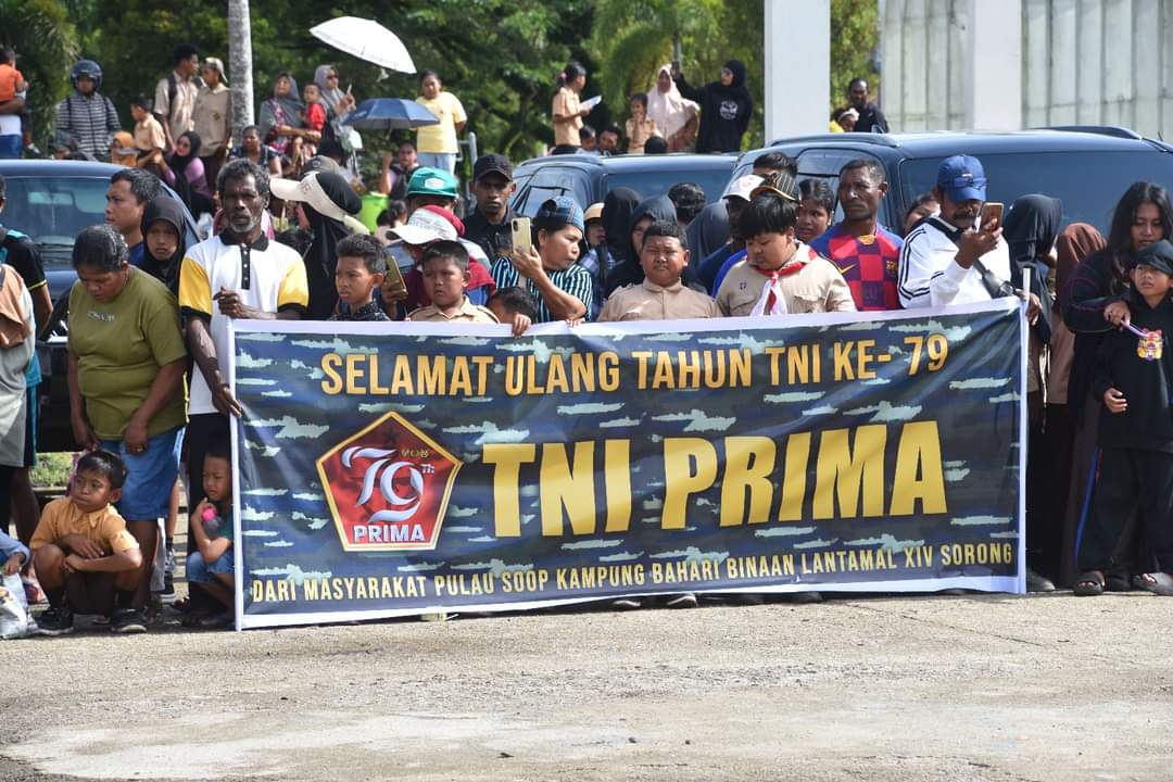 TNI modern bersama rakyat siap mengawal suksesi kepemimpinan nasional untuk Indonesia maju. Demikian tema peringatan HUT TNI ke-79 yang disampaikan Danpasmar III Brigjen TNI Mar Sugianto, saat menjadi Inspektur Upacara (Irup) pada Upacara HUT TNI ke-79, yang berlangsung di Alun-alun, Aimas, Kabupaten Sorong, Provinsi Papua Barat Daya, Sabtu (5/10/2024).