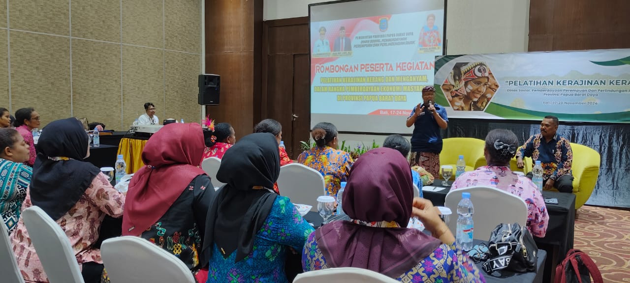 Dalam rangka pemberdayaan ekonomi masyarakat di Provinsi Papua Barat Daya, Dinas Sosial Pemberdayaan Perempuan dan Perlindungan Anak Provinsi Papua Barat Daya menggelar kegiatan Pelatihan Kerajinan Kerang dan Menganyam, yang berlangsung di Swissbel Hotel Rainforest, Kuta, Bali, Senin (18/11/2024).