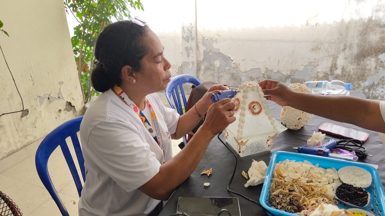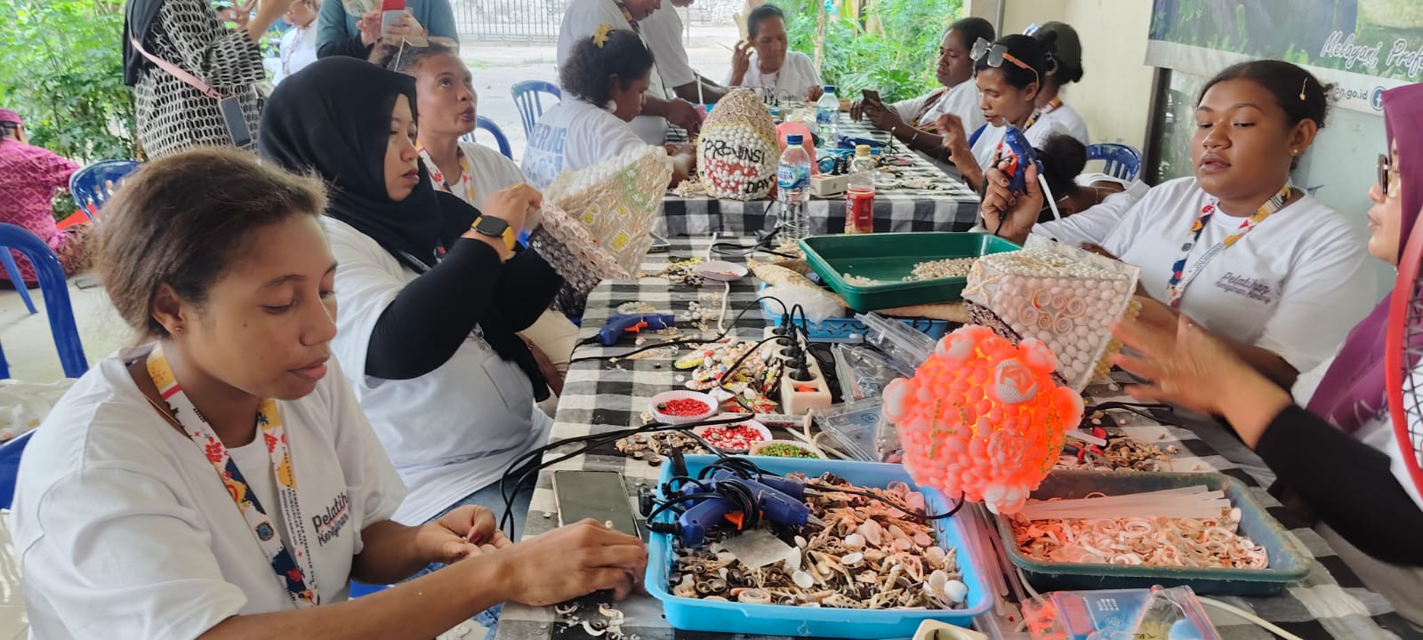 Belajar Langsung ke Bali, Mama Papua Buat Lampu dan Bros dari Limbah Kerang
