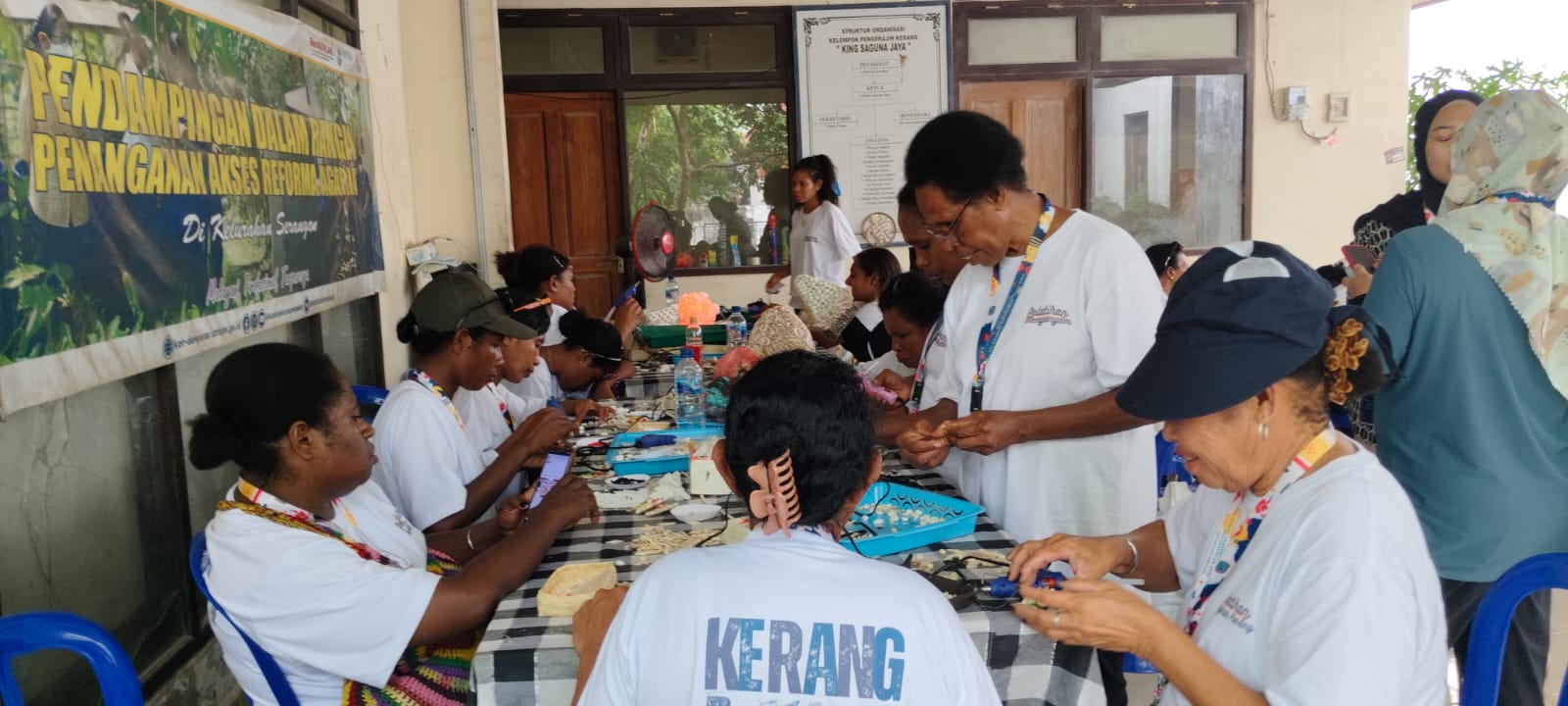 Setelah mendapat materi tentang cara mengolah limbah kerang, puluhan mama Papua kemudian diajak langsung ke pusat pembuatan kerajinan milik salah satu pengrajin yang ada di Bali yakni I Made Kanan Jaya, yang beralamat di Desa Adat Serangan, Kota Denpasar, Selasa (19/11/2024).