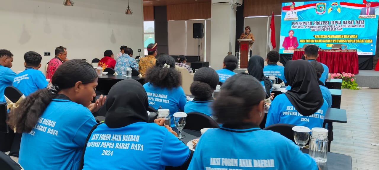 Dalam rangka meningkatkan keterampilan hidup dan ketahanan diri anak dalam mencegah kekerasan, Dinas Sosial Pemberdayaan Perempuan dan Perlindungan Anak Provinsi Papua Barat Daya menggelar kegiatan Sosialisasi Pemenuhan Hak Anak, bertempat di Rylich Panorama Hotel, Kota Sorong, Kamis (5/12/2024).