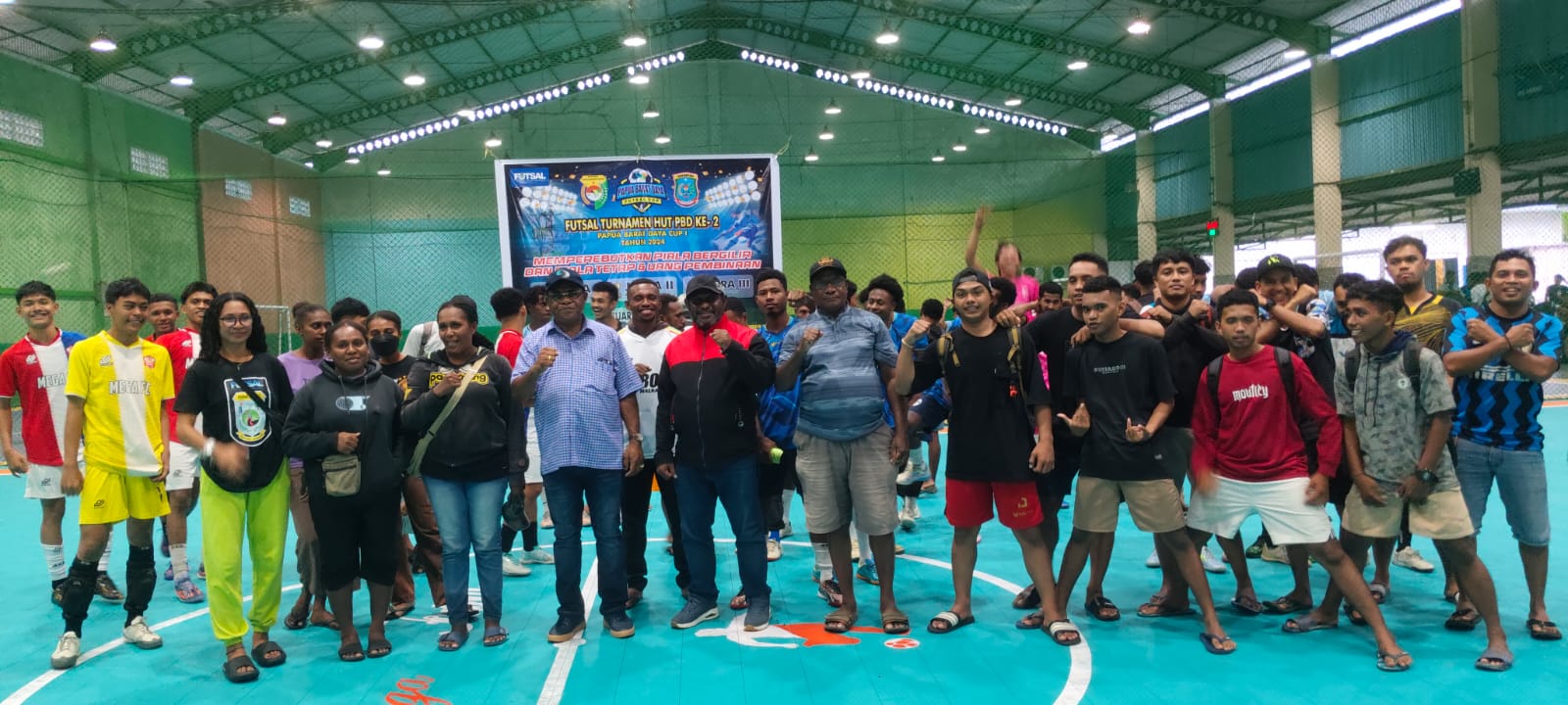 Dalam rangka memperingati HUT ke-2 Provinsi Papua Barat Daya, tiga tim pemekaran yaitu Tim Deklarator, Presidium dan Percepatan menggelar Turnamen Futsal, Sabtu (7/12/2024).