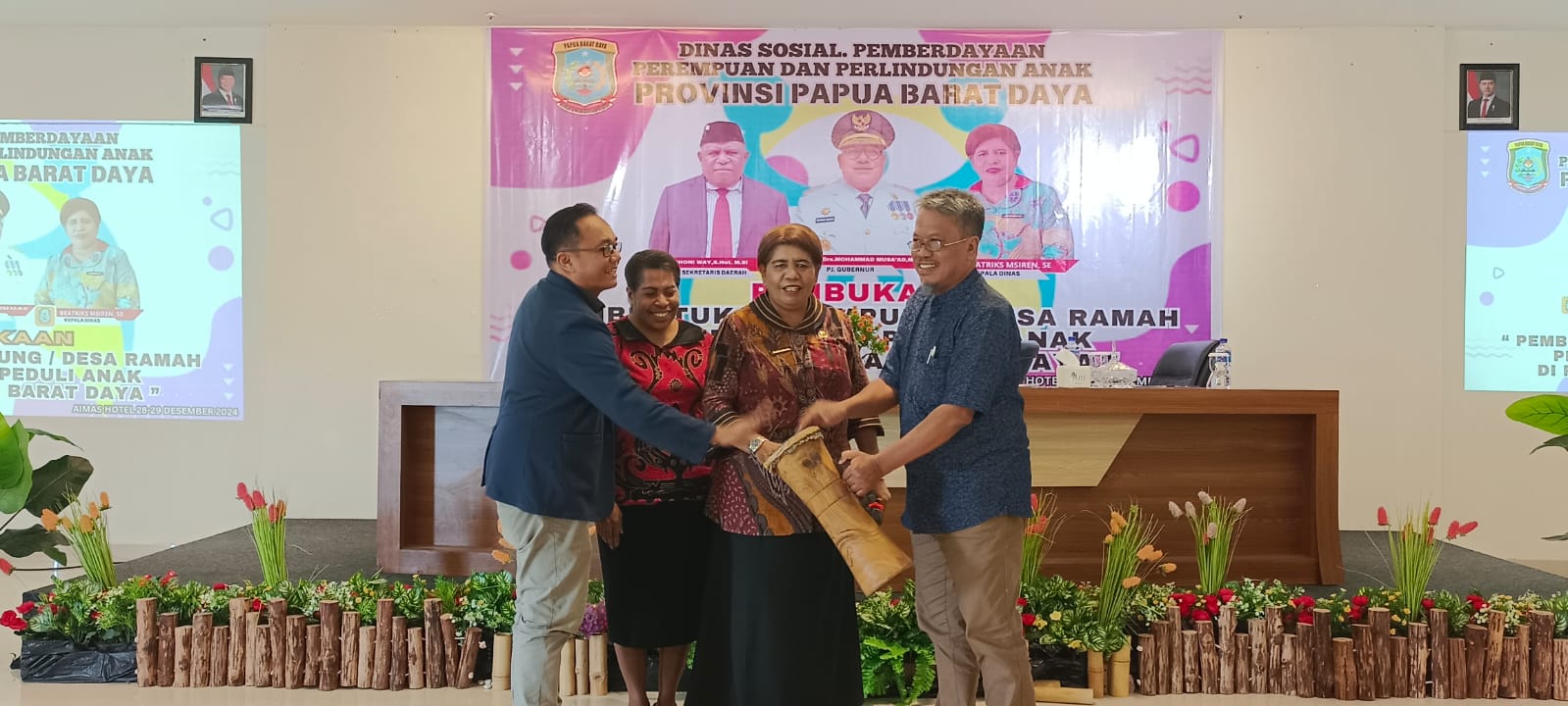 Dalam rangka meningkatkan pemahaman dan kesadaran masyarakat terhadap kesetaraan gender, pemberdayaan dan perlindungan perempuan serta pemenuhan hak dan perlindungan anak, Dinas Sosial, Pemberdayaan Perempuan dan Perlindungan Anak Provinsi Papua Barat Daya menggelar kegiatan Pembentukan Kampung/Desa Ramah Perempuan dan Perlindungan Anak di Provinsi Papua Barat Daya, yang berlangsung di Hotel Aimas, Kabupaten Sorong, Sabtu (28/12/2024).