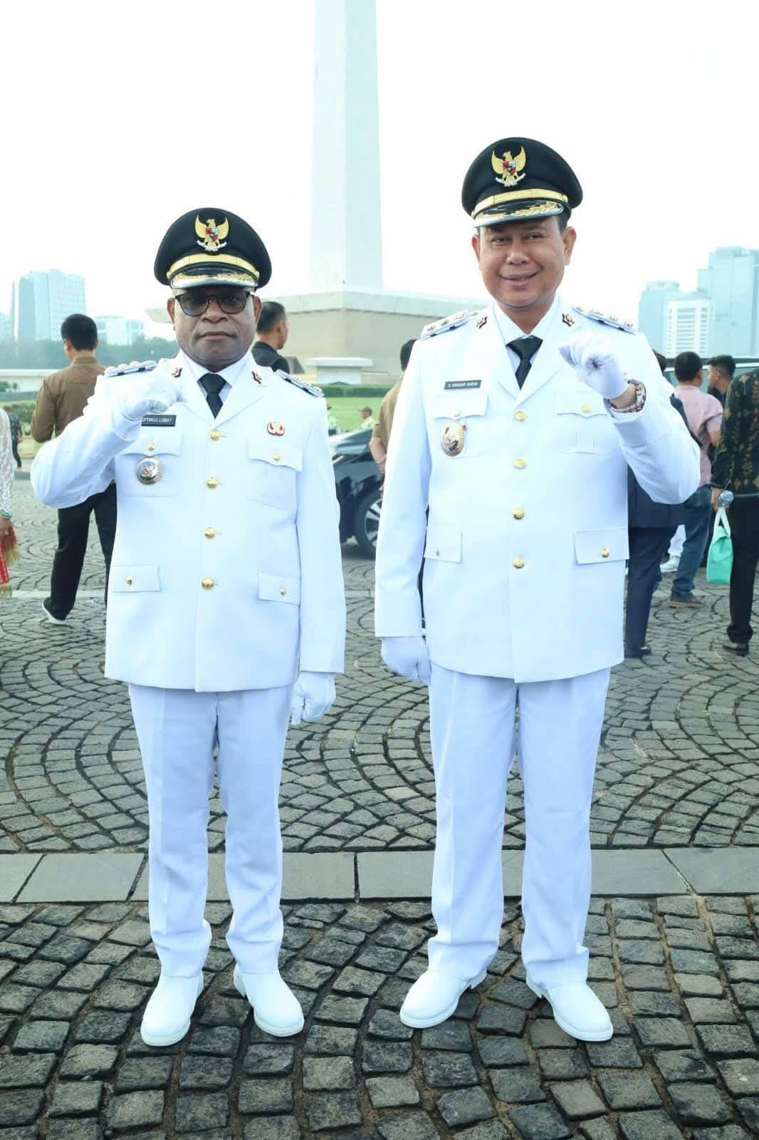 JAKARTA – Presiden Republik Indonesia Prabowo Subianto resmi melantik Septinus Lobat dan Anshar Karim sebagai Wali Kota dan Wakil Wali Kota Sorong, bersama 959 gubernur-wakil gubernur, bupati-wakil bupati dan wali kota–wakil wali kota lainnya, di halaman Istana Negara, Kamis (20/2/2025).