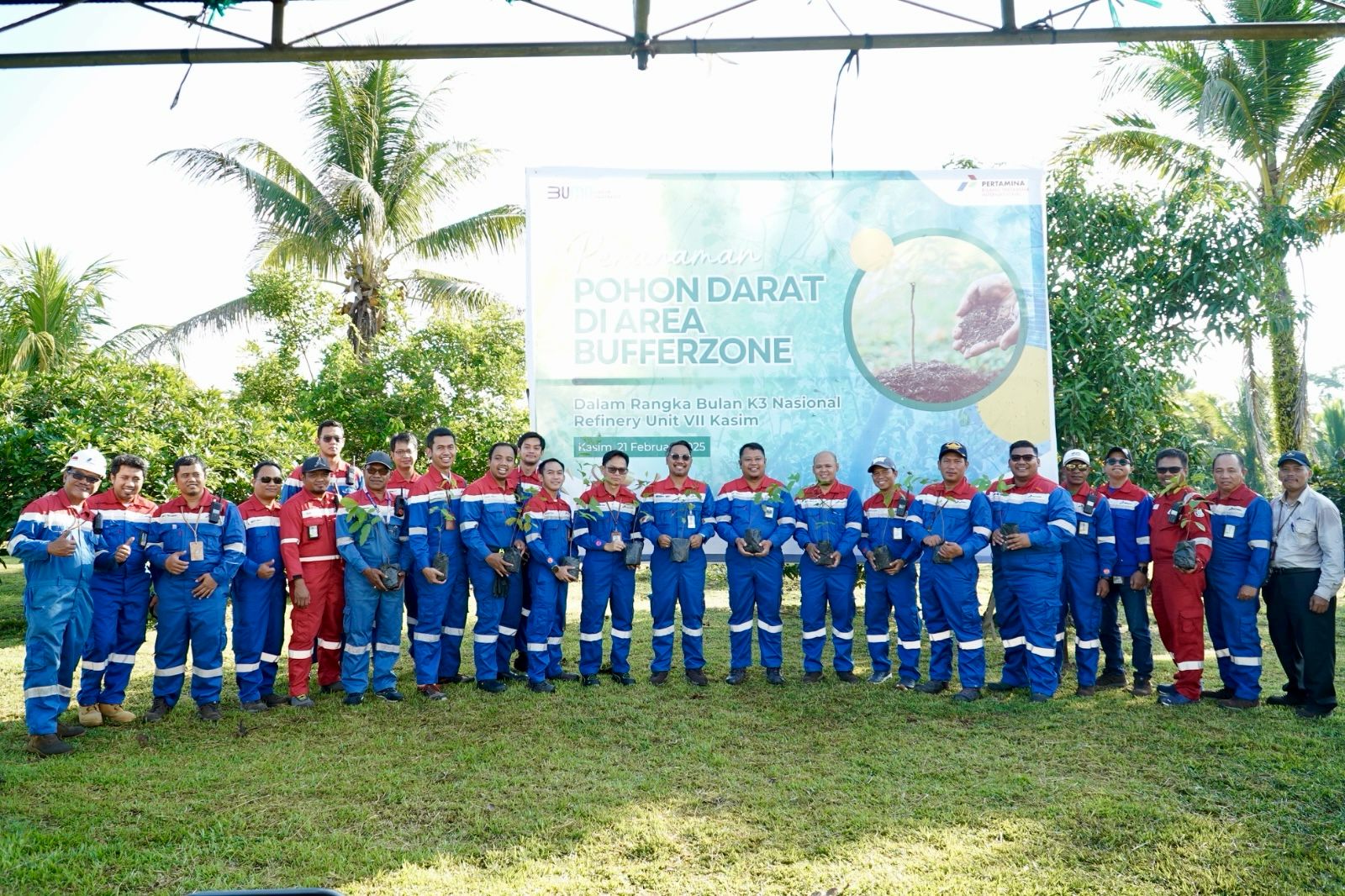 Kasim- Dalam menyemarakan Bulan K3 Nasional PT Kilang Pertamina Internasional RU VII Kasim melakukan penanaman pohon darat, di area buffer zone yang dilakukan secara simbolik di Taman Akhlak RU VII Kasim (21/02/25)