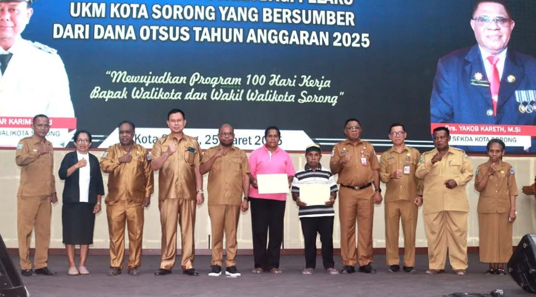 Bantuan yang berasal dari Pemerintah Kota Sorong melalui Dinas Koperasi dan Usaha, Kecil dan Menengah (UKM) Kota Sorong, diserahkan langsung oleh Wali Kota Sorong Septinus Lobat dan Wakil Wali Kota Sorong Anshar Karim, bertempat di Gedung LJ Kompleks Kantor Walikota Sorong, Selasa (25/3/2025).