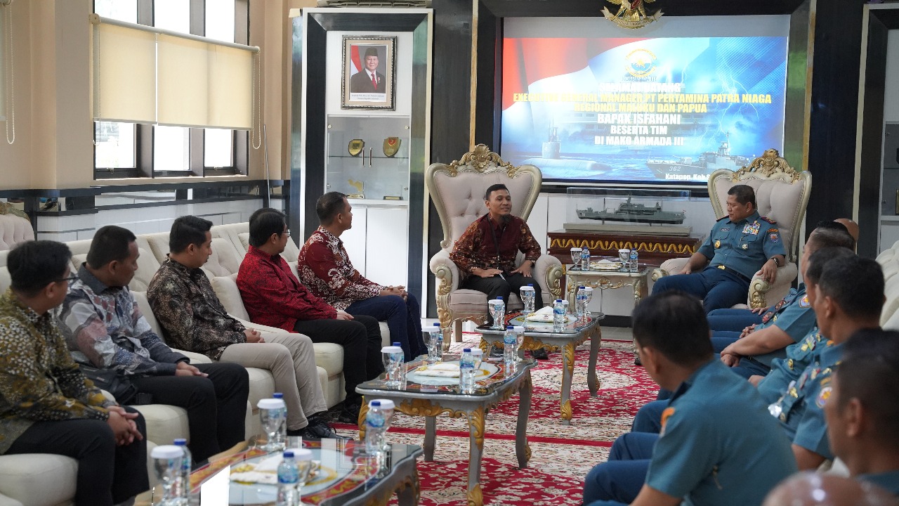 Dalam upaya memastikan kelancaran dan ketersediaan pasokan Bahan Bakar Minyak (BBM) dan Liquefied Petroleum Gas (LPG) untuk masyarakat di wilayah Papua Maluku, Pertamina Patra Niaga Regional Papua Maluku melakukan kunjungan kerja ke Markas Komando Armada III di Sorong, Provinsi Papua Barat Daya, Senin (24/3/2025).