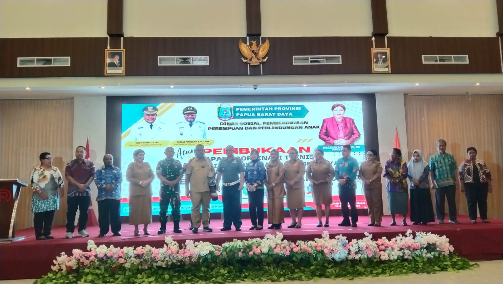 Dinas Sosial Pemberdayaan Perempuan dan Perlindungan Anak Provinsi Papua Barat Daya menggelar Rapat Koordinasi Teknis Bidang Sosial dan Bidang Pemberdayaan Perempuan dan Perlindungan Anak se-Provinsi Papua Barat Daya, yang berlangsung di Rylich Panorama Hotel Sorong, Selasa (17/6/2025).