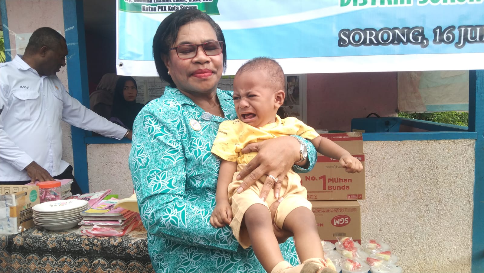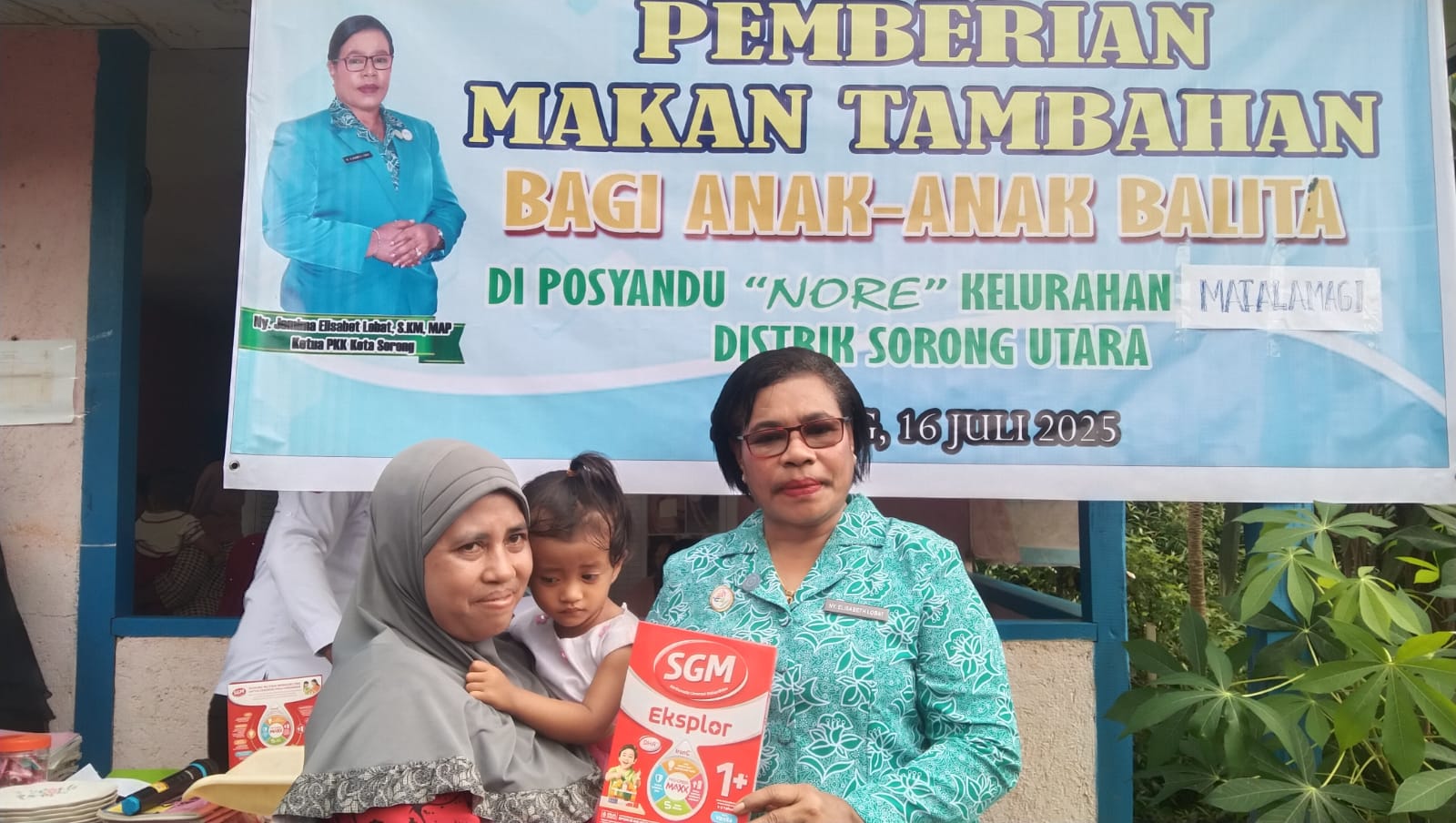 “Kami kesini untuk memberikan makanan tambahan berupa bubur, telur dan susu kepada bayi balita yang ada di Posyandu Nore, Kelurahan Matalamagi,” ungkap Ketua TP-PKK Kota Sorong.