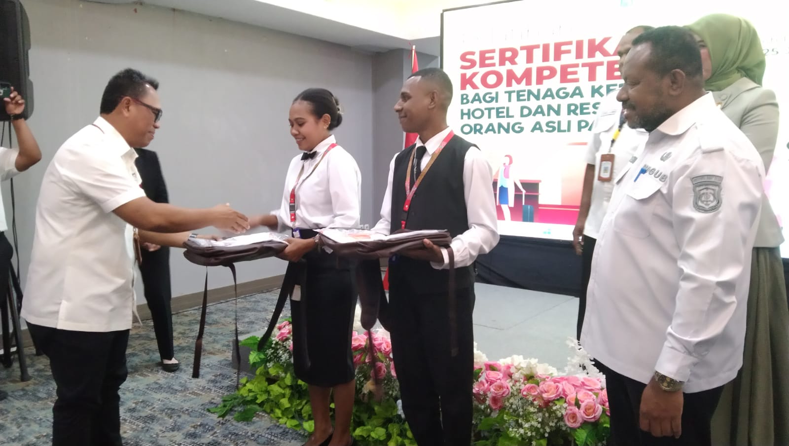 Dinas Pemuda, Olahraga, Pariwisata dan Ekonomi Kreatif Provinsi Papua Barat Daya menggelar Pelatihan Sertifikasi Kompetensi Bagi Tenaga Kerja Perhotelan dan Restaurant Orang Asli Papua (OAP), yang berlangsung di Rylich Panorama Hotel, Kota Sorong, Papua Barat Daya, Rabu-Jumat (23-25/7/2025).