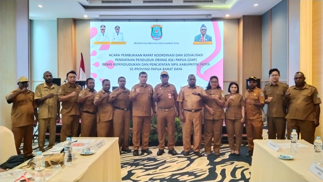 Terkait hal tersebut, Dinas Dukcapil dan PMK Papua Barat Daya menggelar Rapat Koordinasi dan Sosialisasi Pendataan Penduduk Orang Asli Papua (OAP) bersama Dinas Kependudukan dan Pencatatan Sipil (Dukcapil) Kabupaten/Kota se-Papua Barat Daya, yang berlangsung di Swissbel Hotel Sorong, Senin (11/8/2025).