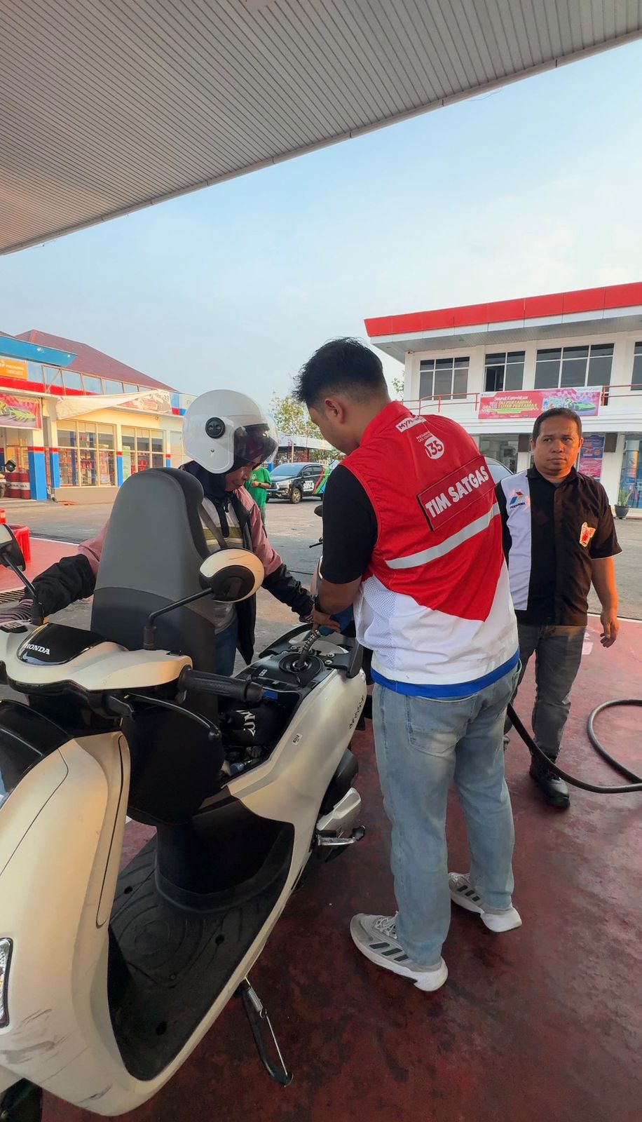 Lalu, bagaimana para mitra ojol dan taksi online ini terus punya ‘energi’ untuk melayani masyarakat? Salah satunya singgah sebentar di SPBU.