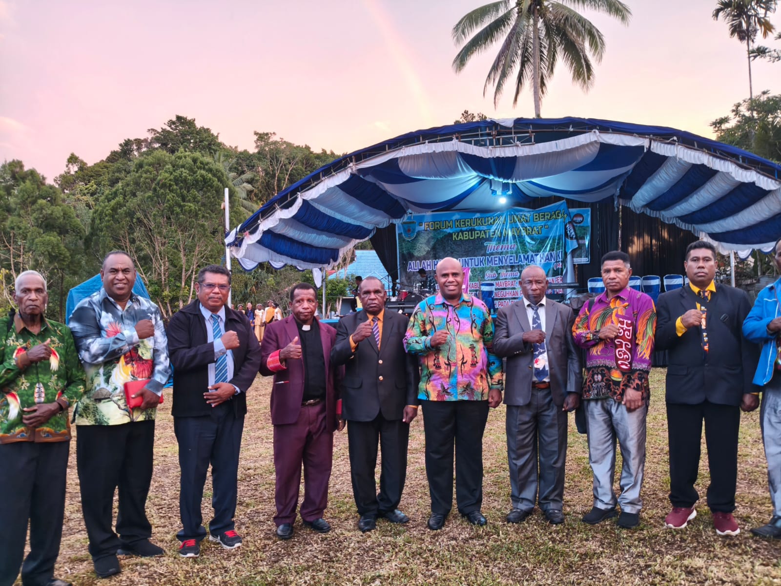 Maybrat — Forum Kerukunan Umat Beragama (FKUB) Kabupaten Maybrat menggelar Kebaktian Kebangunan Rohani (KKR) bertema “Allah Hadir untuk Menyelamatkan Keluarga” di Lapangan Ikuf, Kampung Jitmau, Distrik Aitinyo Raya.