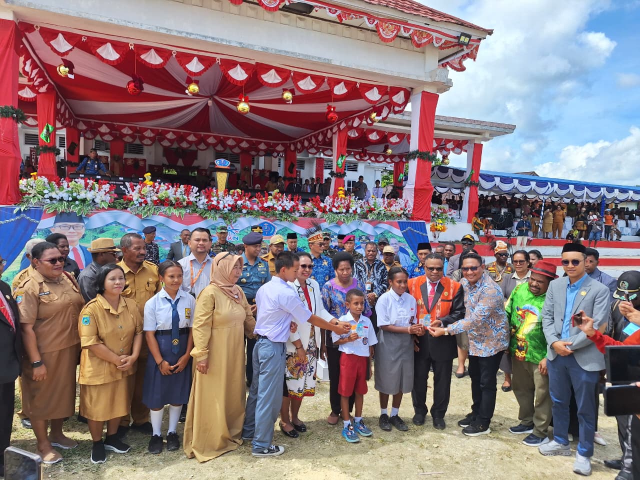 Ketua Dewan Pengurus Wilayah (DPW) Partai Kebangkitan Bangsa (PKB) Provinsi Papua Barat Daya Abdullah Gazam menyerahkan Beasiswa Program Indonesia Pintar (PIP) jalur aspirasi Anggota DPR RI Fraksi PKB kepada siswa tingkat SD, SMP, SMA dan SMK di Teminabuan, Kabupaten Sorong Selatan, Senin (15/12/2025).