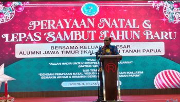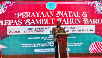 Kota Sorong – Keluarga Besar Ikatan Alumni Jawa Timur (IKALJATIM) di Tanah Papua menggelar Perayaan Natal dan Lepas Sambut Tahun Baru 2026 yang berlangsung di Rylich Panorama Hotel, Kota Sorong, Papua Barat Daya, Jumat (9/1/2026).