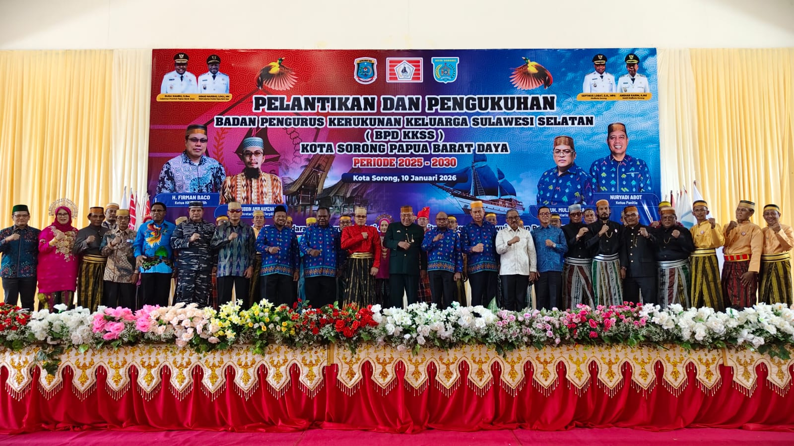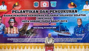SORONG – Ketua Badan Pengurus Daerah Kerukunan Keluarga Sulawesi Selatan (BPD KKSS) Kota Sorong masa bakti 2025–2030, Firman Baco, bersama jajaran pengurus resmi dilantik dan dikukuhkan.