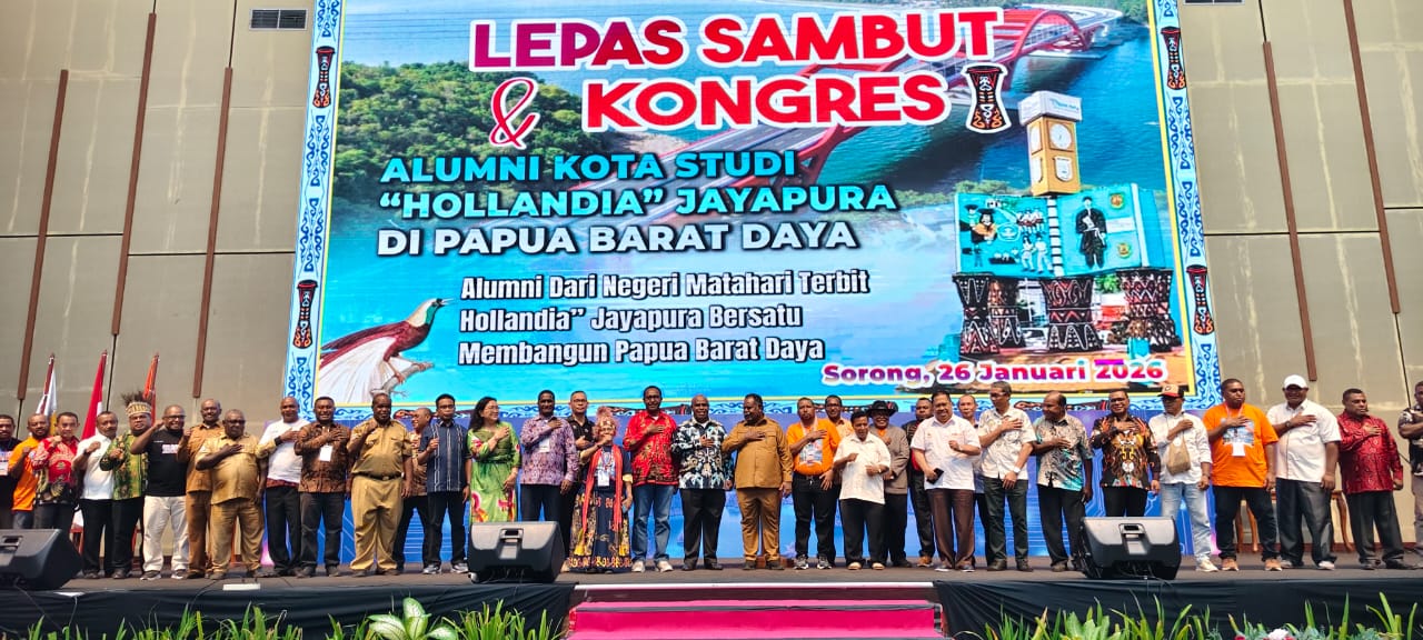 Sorong – Lepas Sambut dan Kongres I Alumni Kota Studi Hollandia Jayapura di Provinsi Papua Barat Daya resmi digelar di Gedung LJ, Kompleks Kantor Wali Kota Sorong, Senin (26/1/2026).