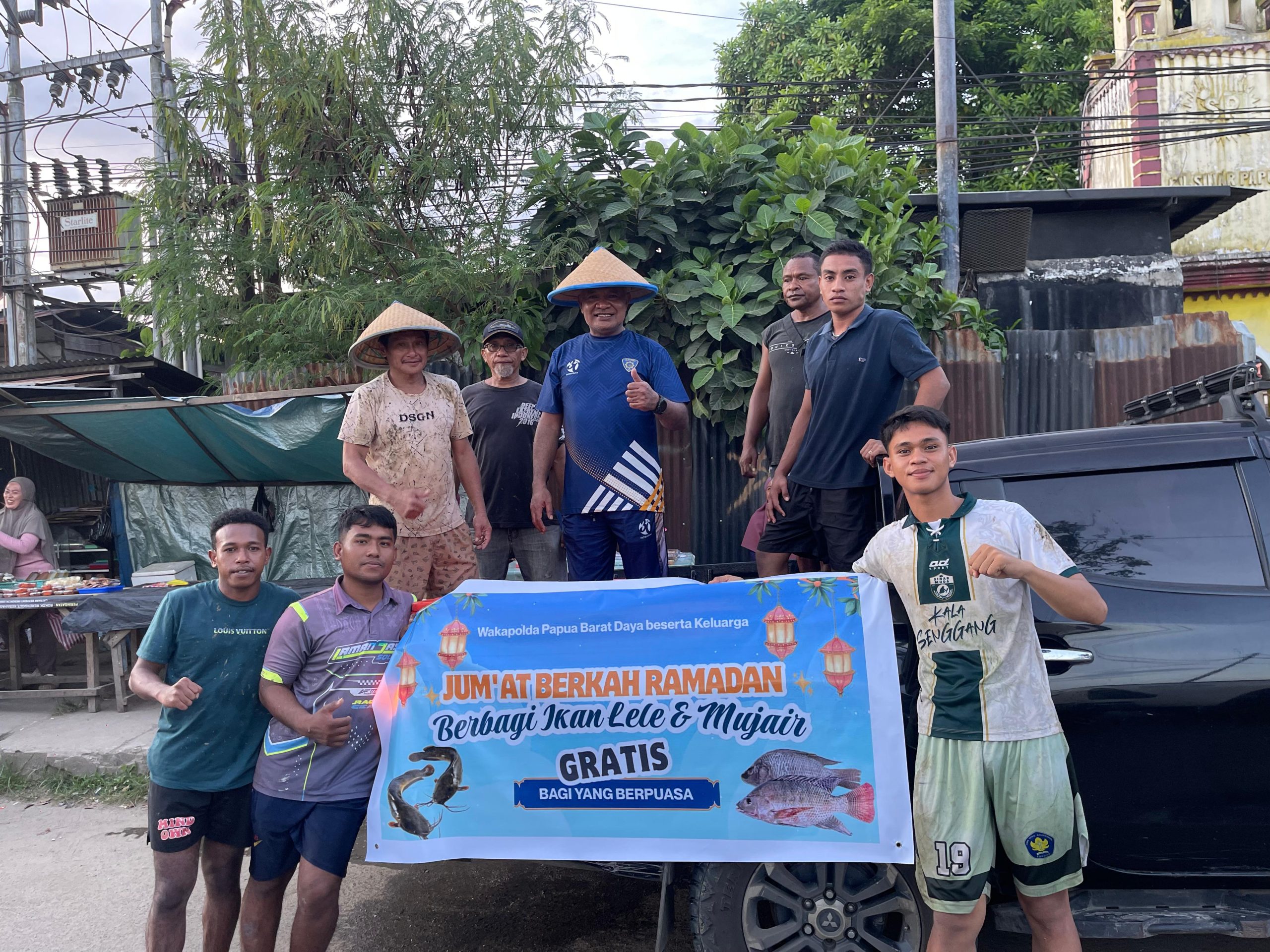 Melalui kegiatan “Jumat Berkah Ramadan”, ia membagikan ikan lele dan mujair segar kepada warga yang melintas di sejumlah ruas jalan di Kota Sorong, Jumat (6/3/2026).