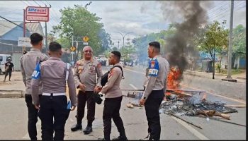 Sorong – Asap hitam dari ban yang terbakar sempat menyelimuti Jalan Basuki Rahmat Kilometer 12, Kota Sorong, Selasa (10/3/2026).