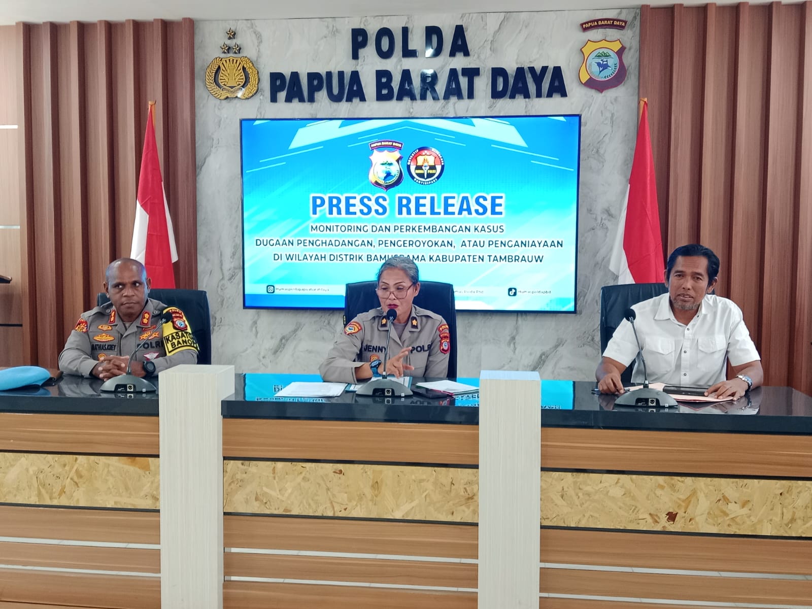 Sorong — Kepolisian Daerah Papua Barat Daya memastikan situasi keamanan di Kabupaten Tambrauw saat ini dalam kondisi kondusif, meski tetap berada dalam kewaspadaan penuh pasca insiden penghadangan dan penganiayaan yang menewaskan dua tenaga kesehatan di Distrik Bamusbama.