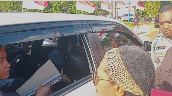 Seorang perempuan bernama Filyani Malaseme bersama keluarganya menghadang rombongan Wapres usai peninjauan. Dengan nada tegas namun penuh harap, ia menyampaikan kekecewaan atas minimnya pelibatan masyarakat adat dalam proses pembangunan di atas tanah mereka.