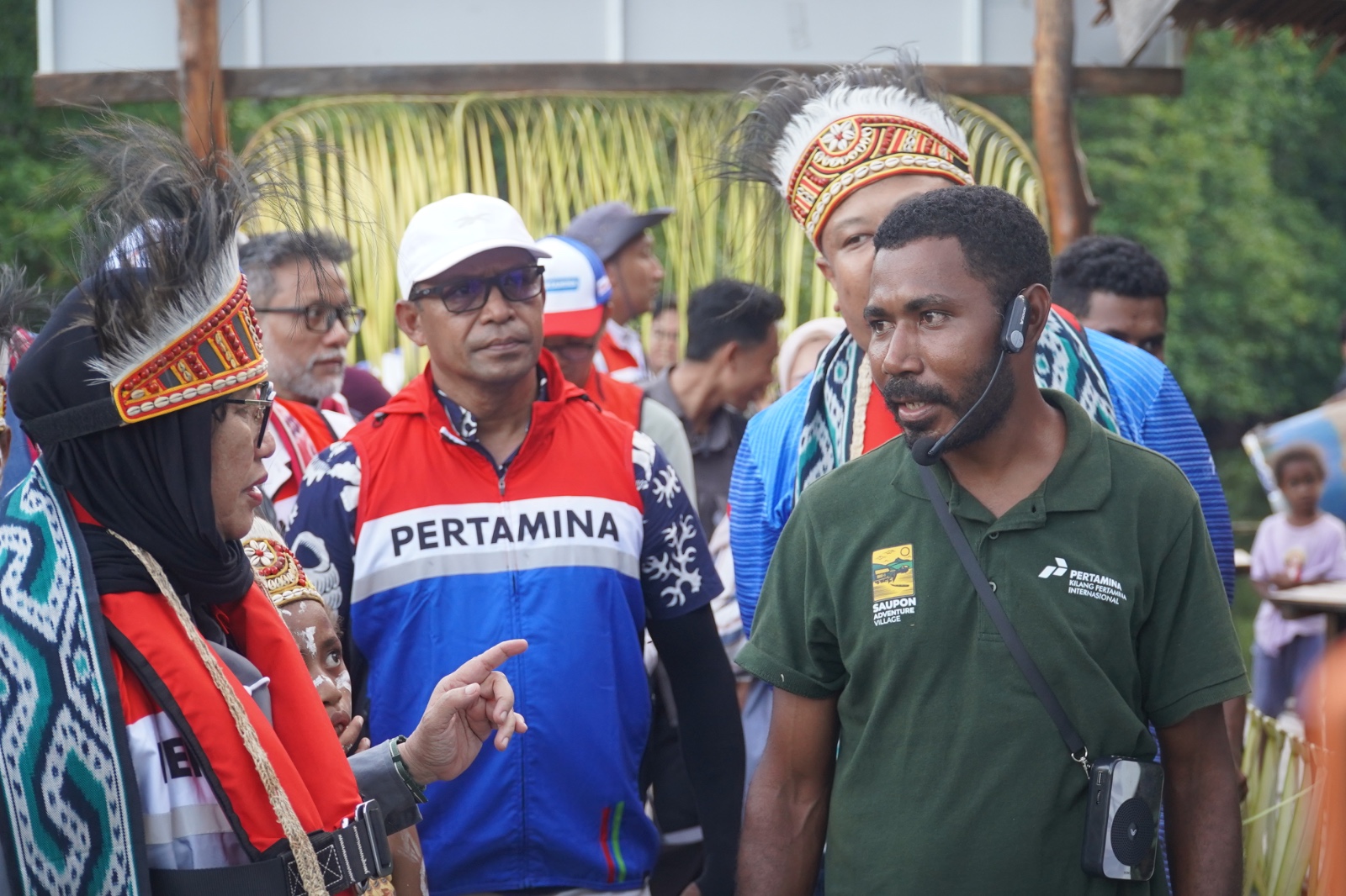Dalam kunjungannya, Komisaris Pertamina bersama jajaran manajemen meninjau langsung pengelolaan kawasan wisata, fasilitas homestay, serta menyerahkan bantuan guna mendukung pengembangan KTH Waifoi.