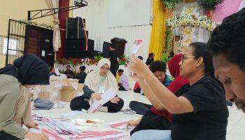 Komisi Pemilihan Umum (KPU) Kota Sorong melakukan proses penyortiran dan pelipatan surat suara Walikota dan…