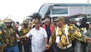 Lambert Jitmau dan Samsudin Anggiluli disambut ribuan pendukung dan simpatisan, saat tiba di Bandara Domine…