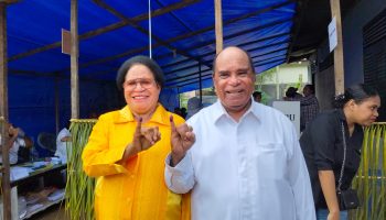 Mantan Walikota Sorong 2 periode Lamberthus Jitmau menyalurkan hak pilihnya dalam Pilkada Serentak 2024, di…