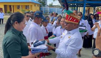 Wali Kota Sorong Septinus Lobat mulai membagikan seragam sekolah gratis, Rabu (30/7/2025). Pembagian seragam sekolah…