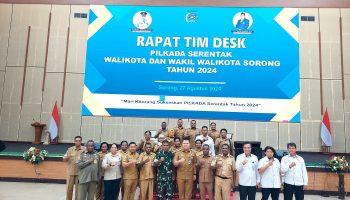 Penjabat Wali Kota Sorong Bernhard Eduard Rondunuwu memimpin rapat Tim Desk Pilkada Serentak 2024, bertempat…